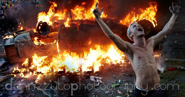 The burning downtown of Vancouver …