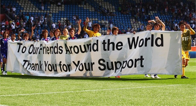 Japan holds a message to the world at their games.